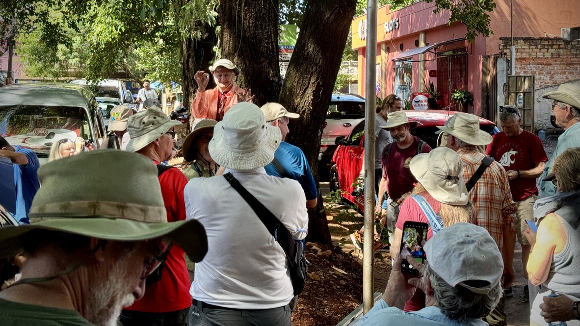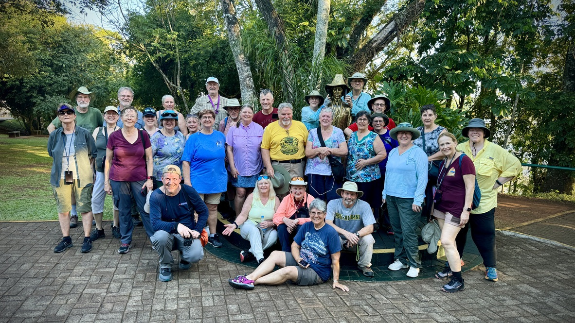 In March 2024, we (36 geocachers) met in Buenos Aires, flew to Iguazu Falls for a couple of days (which included a side trip to Paraguay). We then flew to Sau Paulo and bussed to Intervales State Park for a few days in the Brazillian Jungle! While in Intervales State Park, the whole group made it along the trail to the famous Mission-4: Southern Bowl Project APE Cache led by our guide who hacked away the overgrown jungle with his machete. A number of our group also completed the APE Cache Geotour in the sweltering heat. This was a memorable trip for all, and a highlight of our South American adventures!